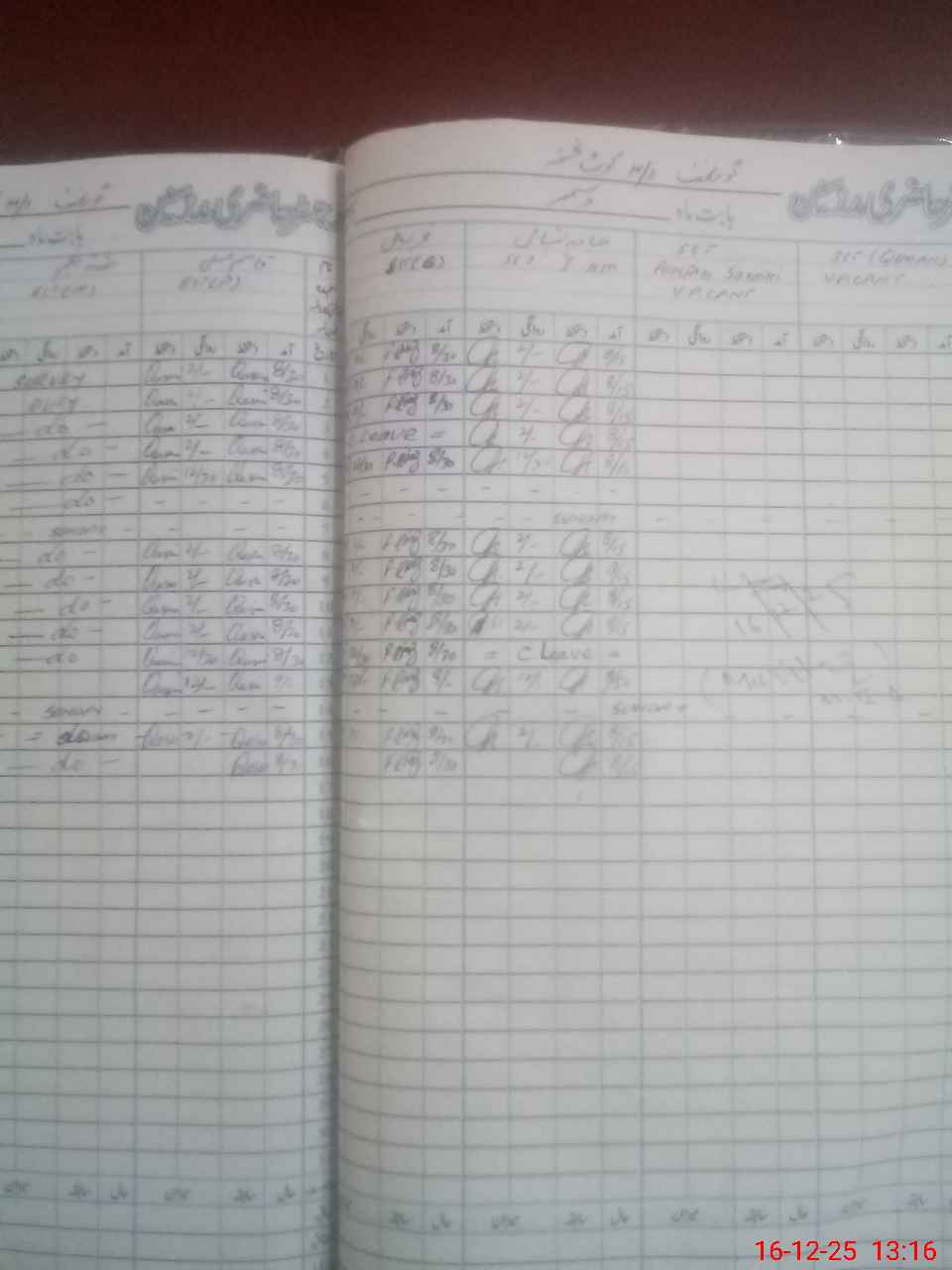 | CNIC | Full Name | Designation | R/C | Absence During Last Calender Month |