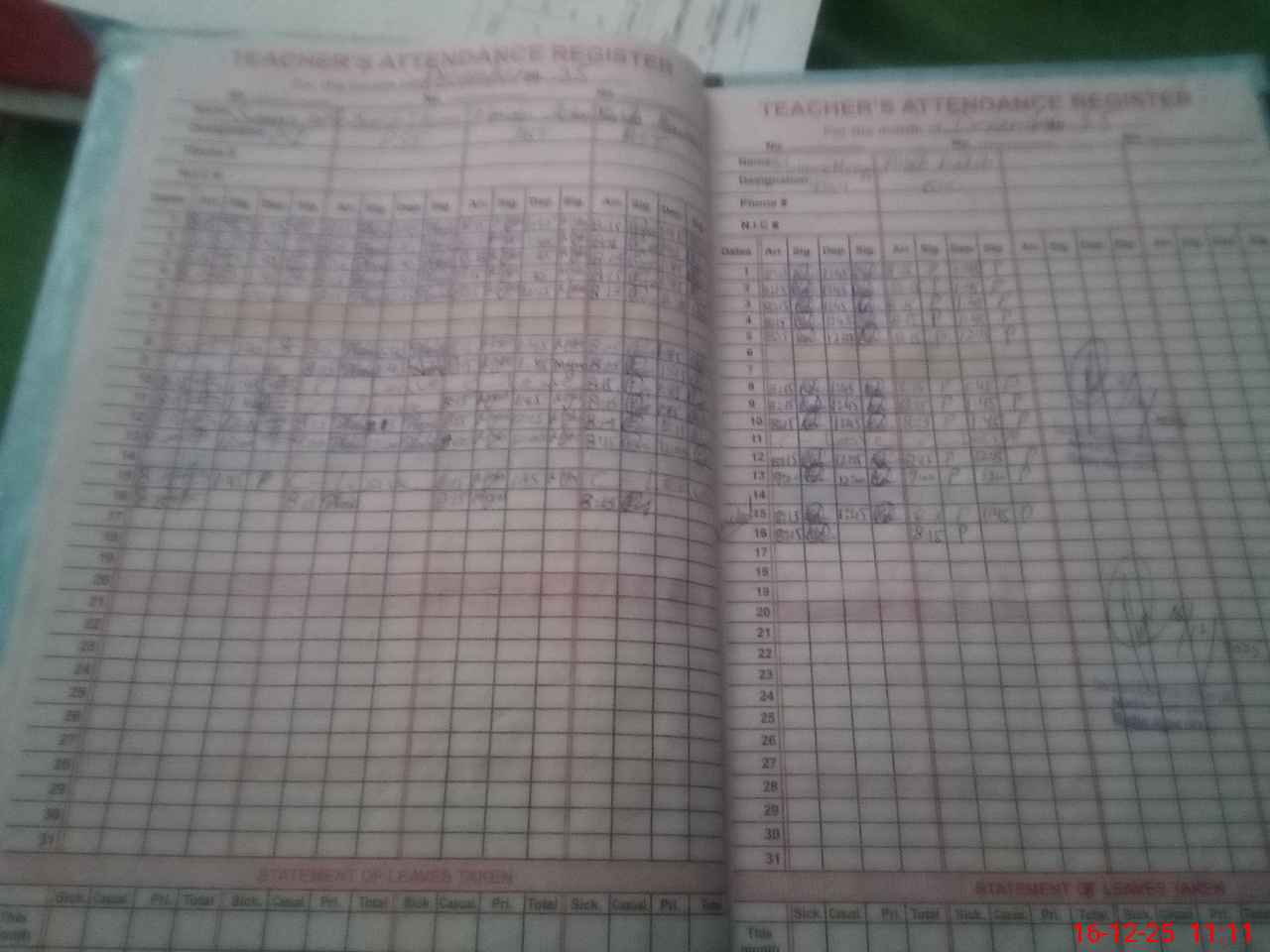 | CNIC | Full Name | Designation | R/C | Absence During Last Calender Month |