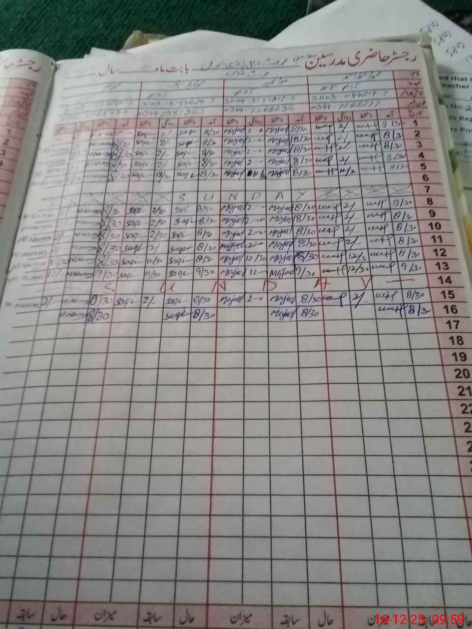 | CNIC | Full Name | Designation | R/C | Absence During Last Calender Month |