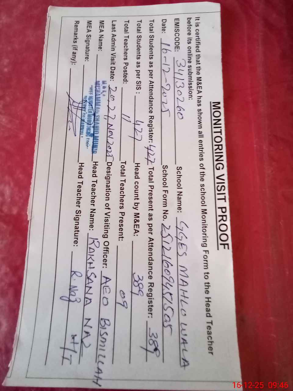| EMIS Code: 34130260 | Name of School: GGES MAHLO WALA | |||