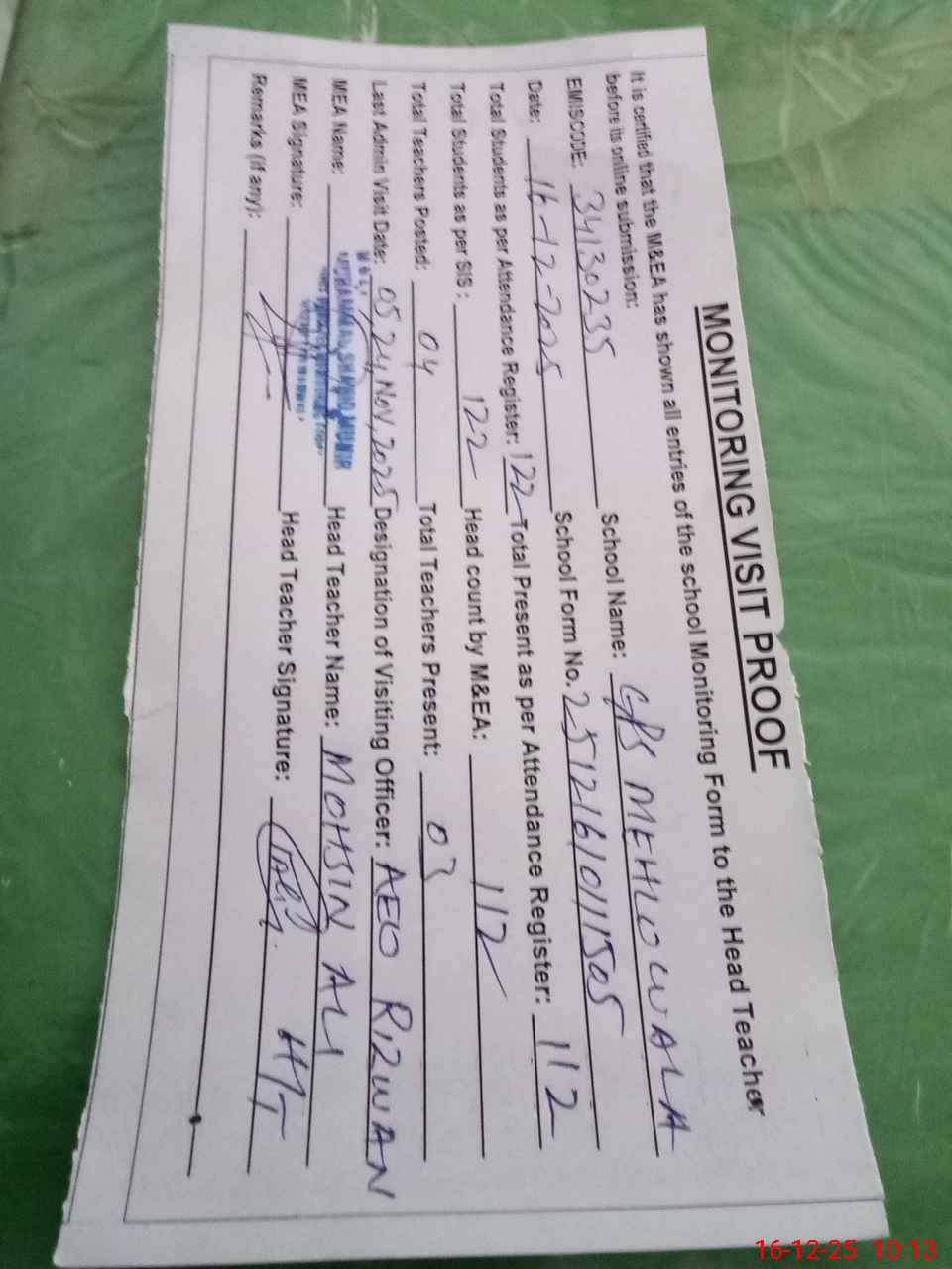 | EMIS Code: 34130235 | Name of School: GPS MEHLO WALA | |||