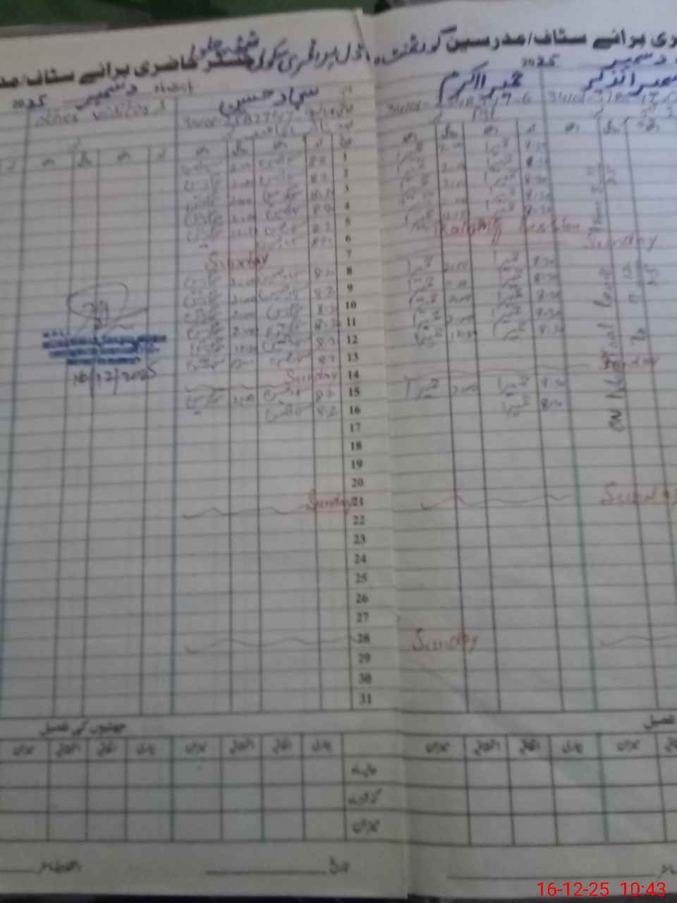 | CNIC | Full Name | Designation | R/C | Absence During Last Calender Month |