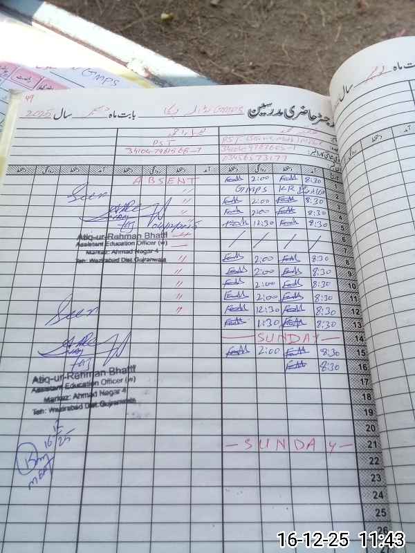 | 34**** | Na**** Ah**** | PST Science/Maths | Regular | 0 | 0 | 30 | 0 | 0 | 0 | 0 | 0 | 0 | Absent (Un-Authorized) |