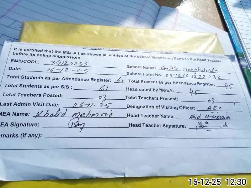 | EMIS Code: 34120235 | Name of School: GPS DURGAHI WALA | |||