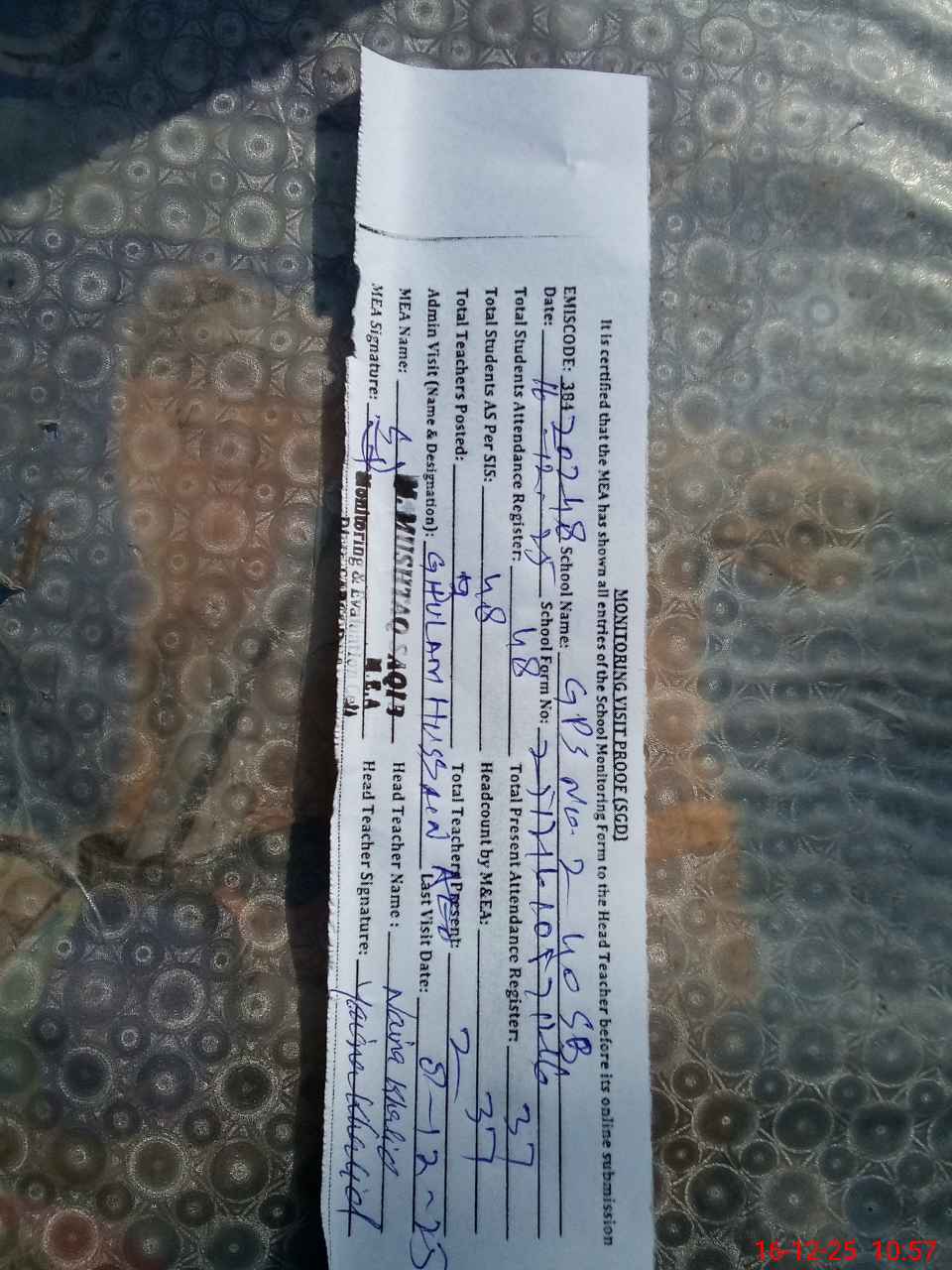 | EMIS Code: 38420248 | Name of School: GPS NO.2 CHAK NO.40 SB | |||