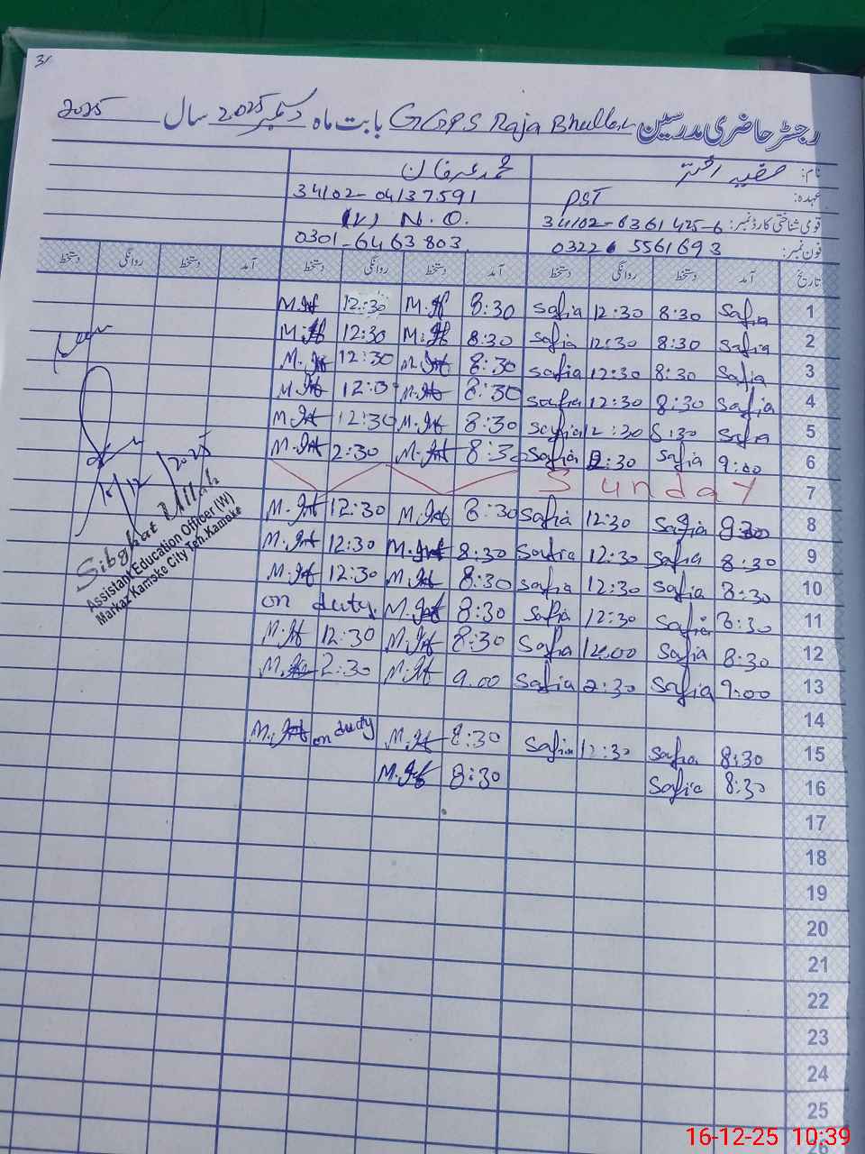 | Name: SA**** AK**** Designation: (School Headmaster's/Headmistress's) PST/PTC/JV Phone/Cell Number: 03**** |