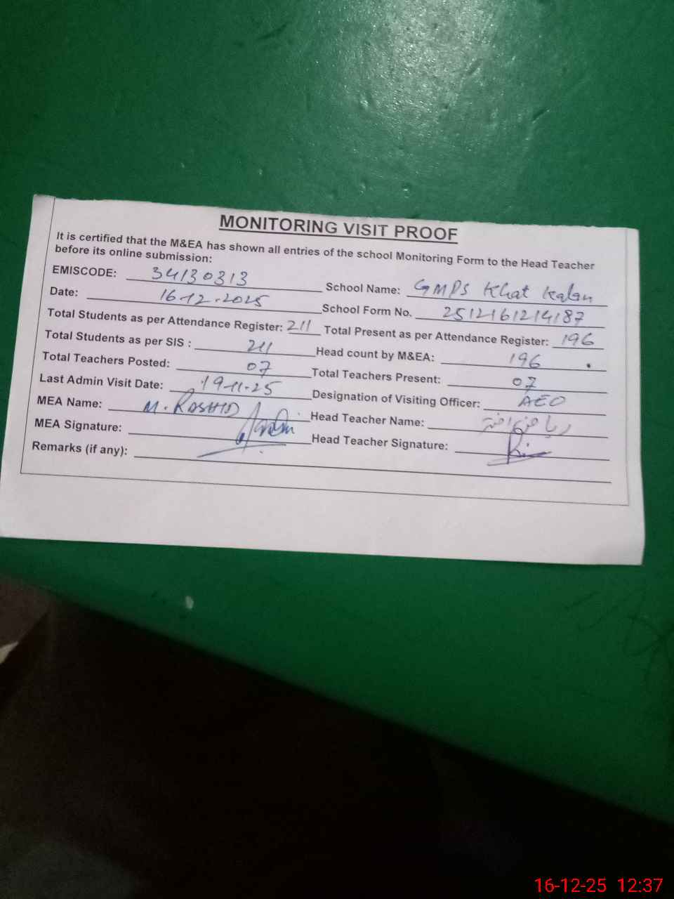 | EMIS Code: 34130313 | Name of School: GMPS KHOT KHURD | |||