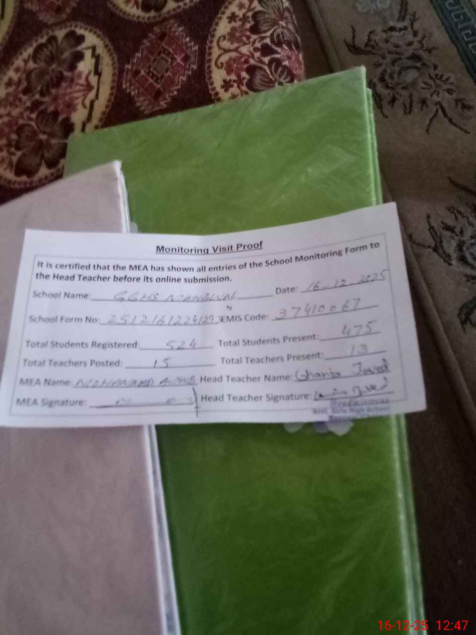 | EMIS Code: 37410067 | Name of School: GGHS MANGWAL | |||