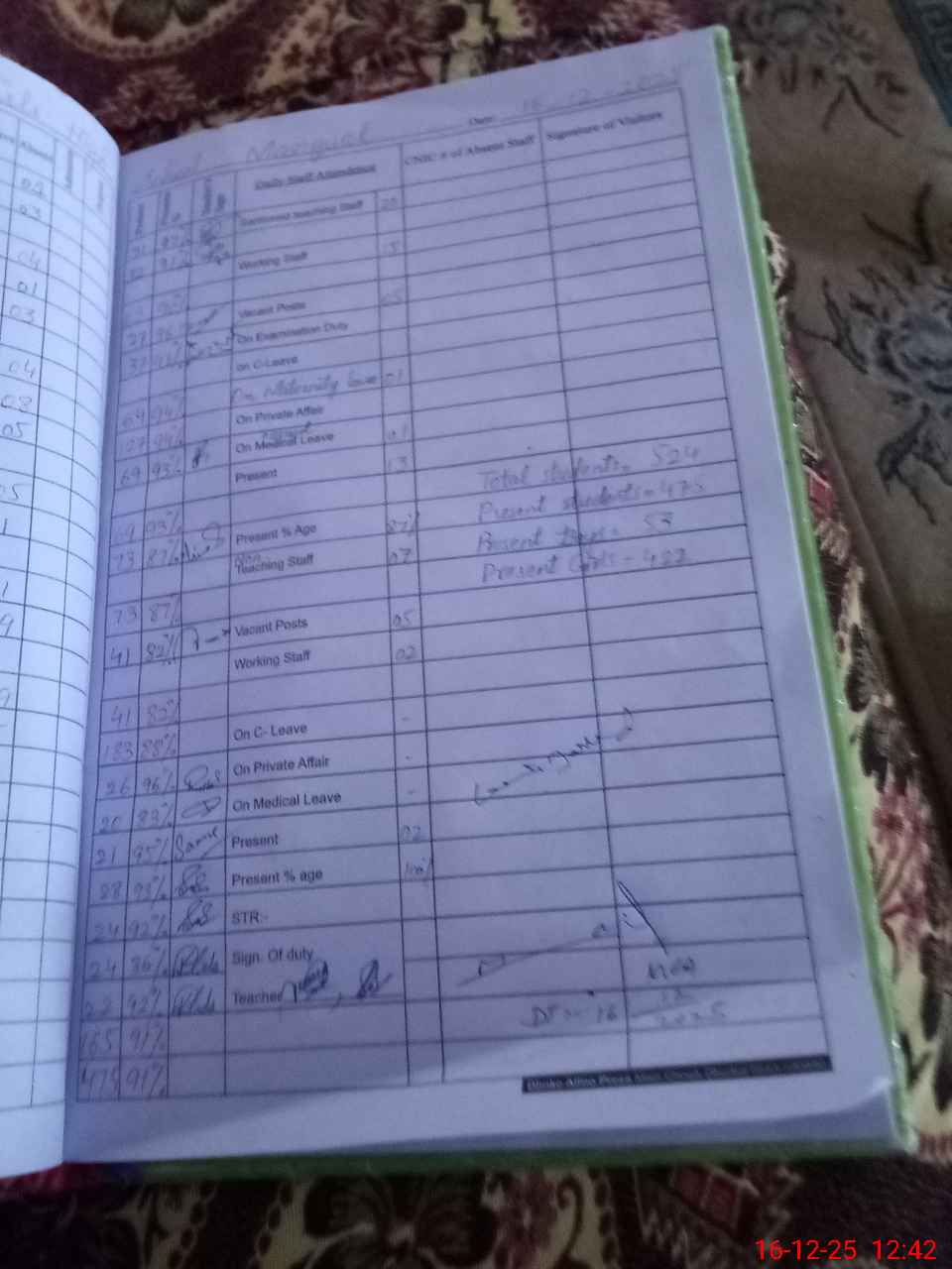 | Name: Gh**** Ja**** Designation: (School Headmaster's/Headmistress's) SNR. HEADMISTRESS Phone/Cell Number: 03**** |