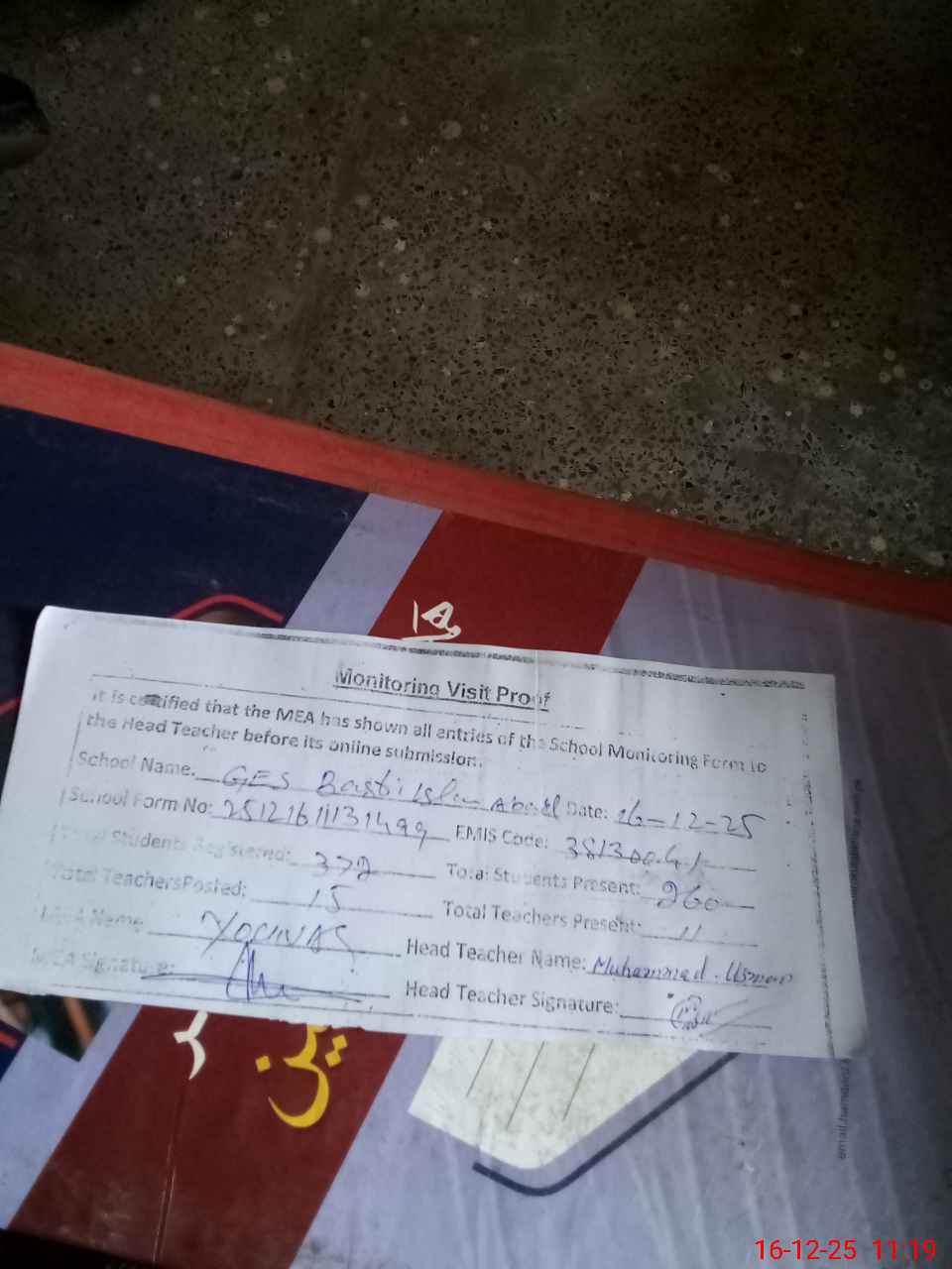 | EMIS Code: 38130041 | Name of School: GES BASTI ISLAMABAD | |||
