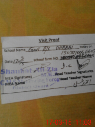 | EMIS Code: 39310315 | Name of School: GPS DHABBI | |||
