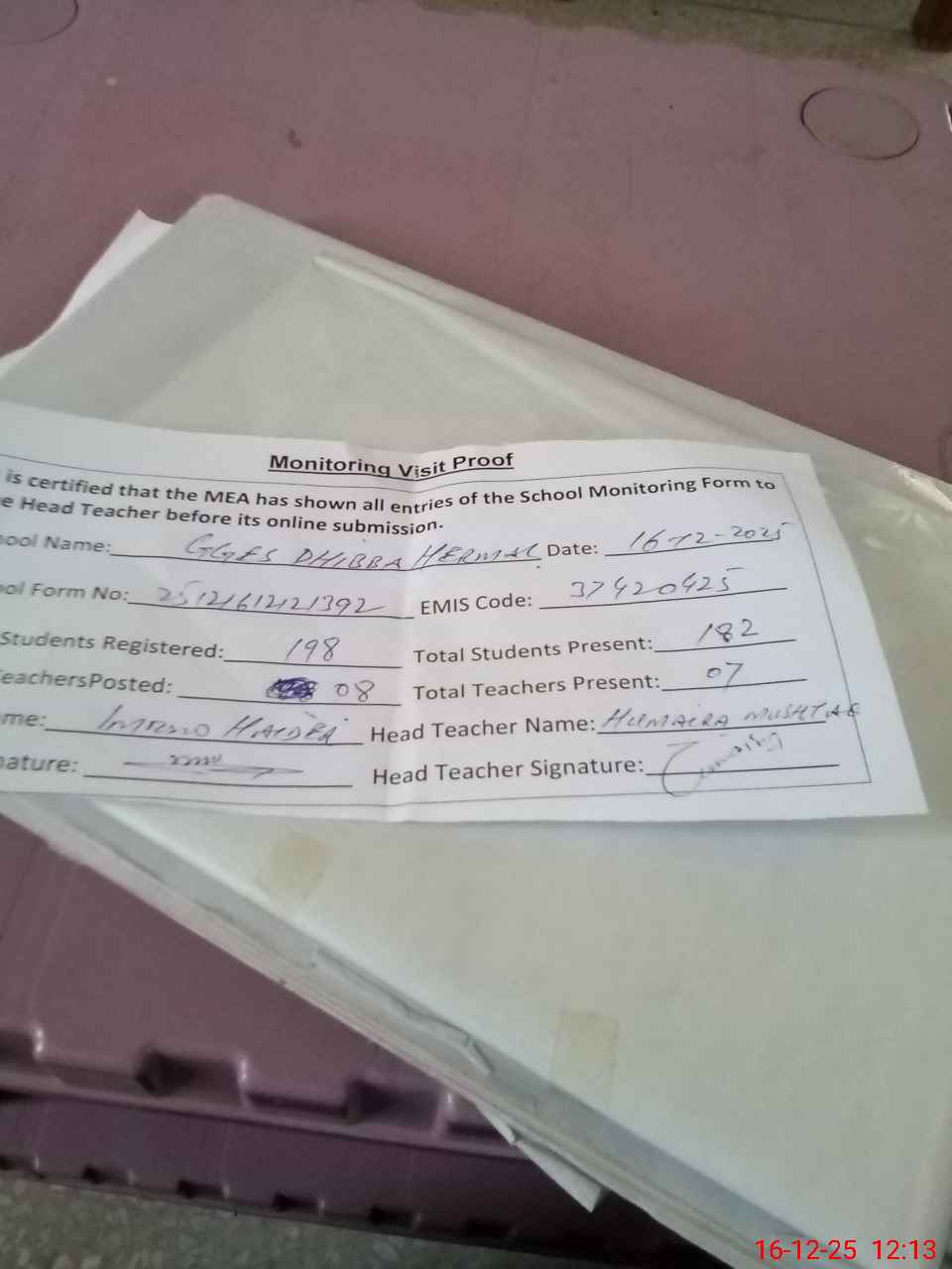 | EMIS Code: 37420425 | Name of School: GGES DHIBA HARMAL | |||