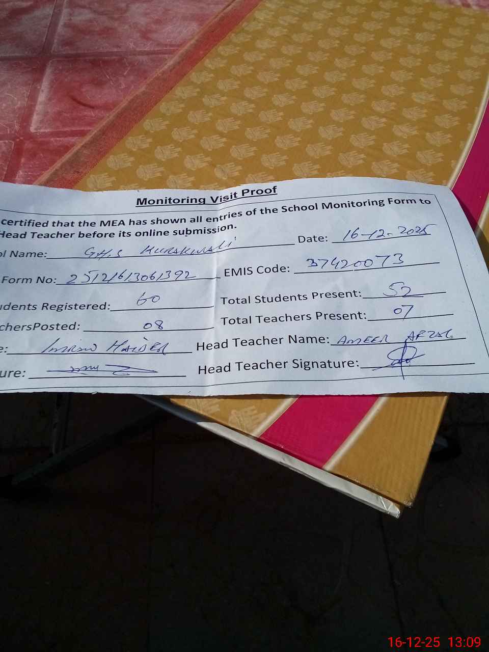 | Certified that this School was Inspected by the Undersigned MEA/DMO Today and the Information Stated Above is as Per Record. | |||||