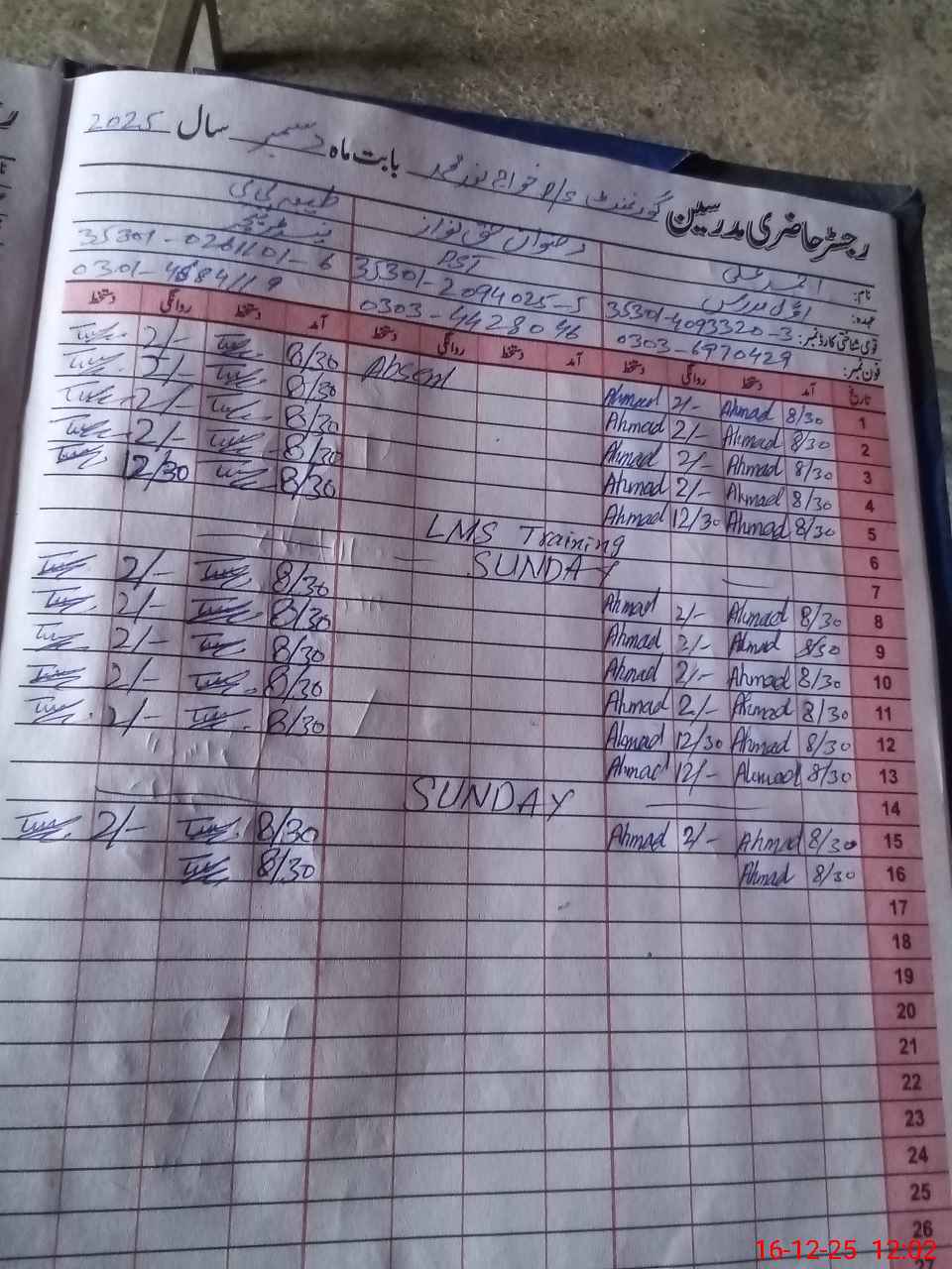 | Remarks (Use Separate Page if Required): Rizwan Haq Nawaz PST absent wef 7June 2025 | |||||