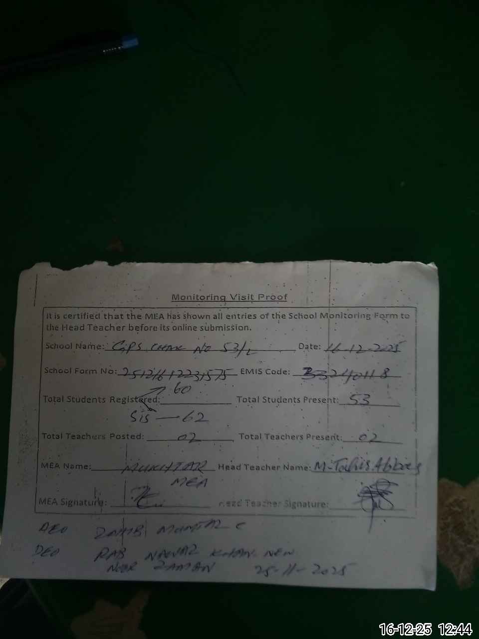 | Certified that this School was Inspected by the Undersigned MEA/DMO Today and the Information Stated Above is as Per Record. | |||||