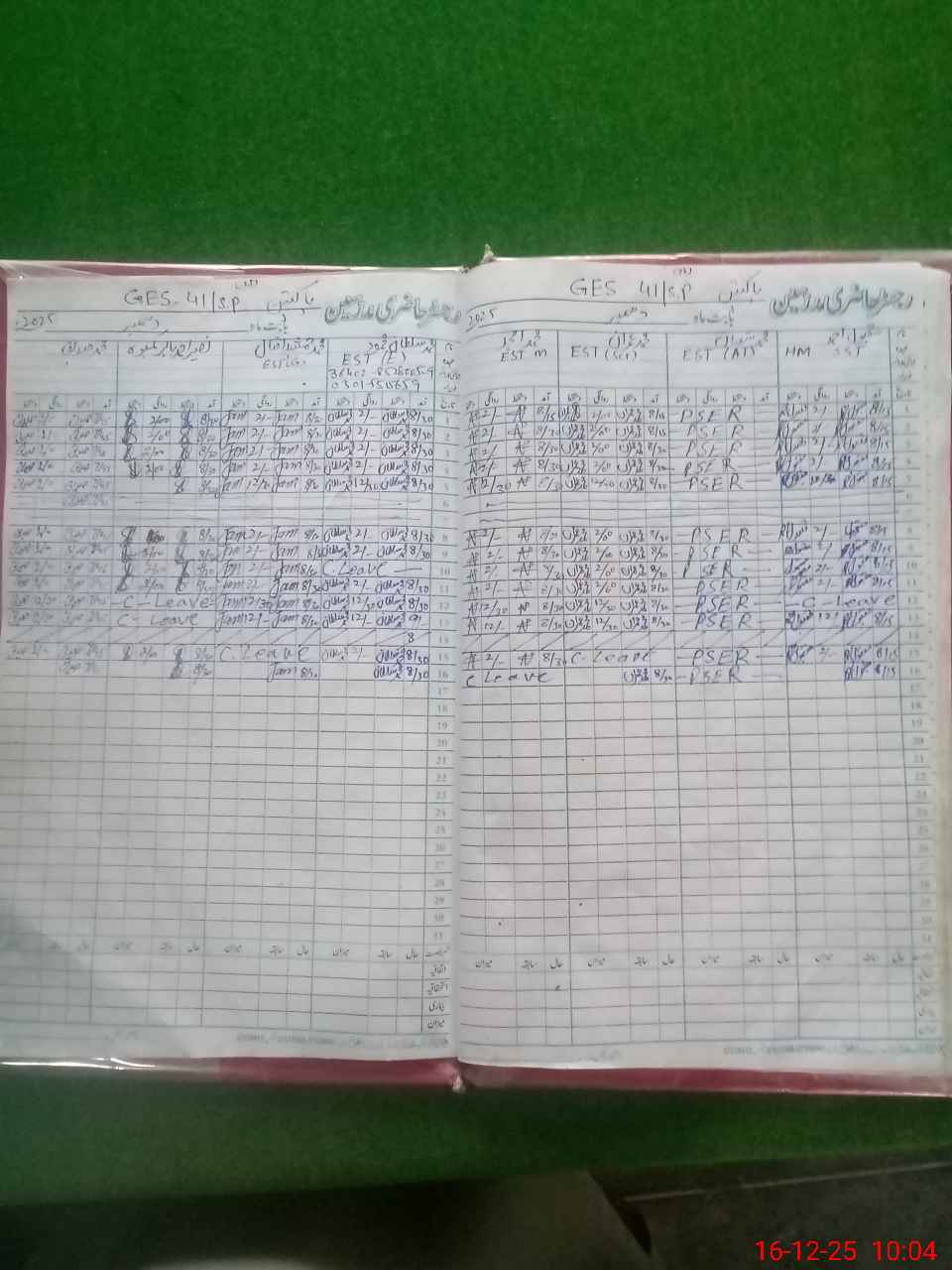 | CNIC | Full Name | Designation | R/C | Absence during last cal. month |