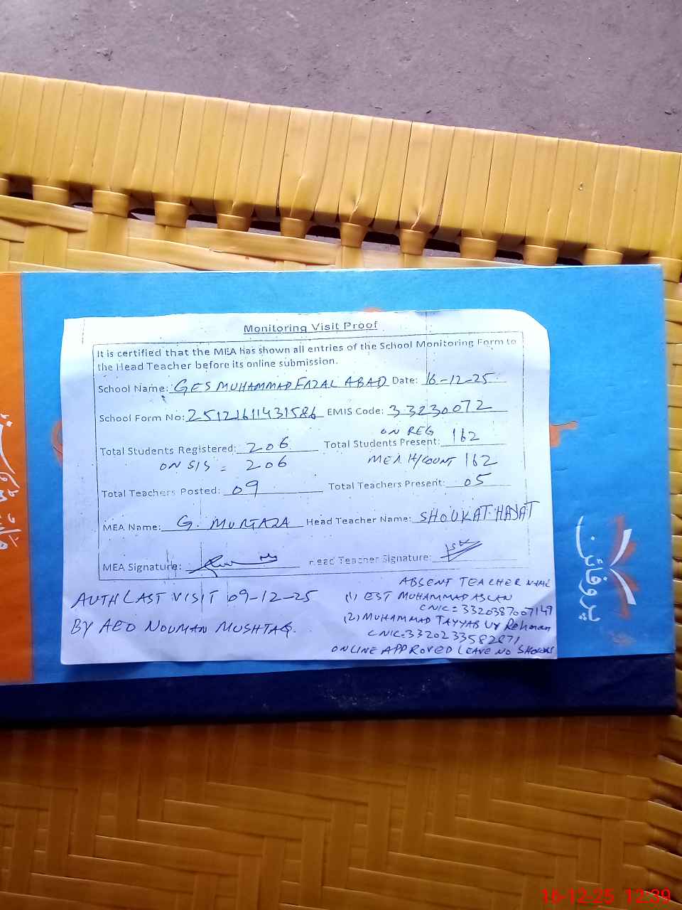 | EMIS Code: 33230072 | Name of School: GES MOHAMMAD FAZAL ABAD | |||