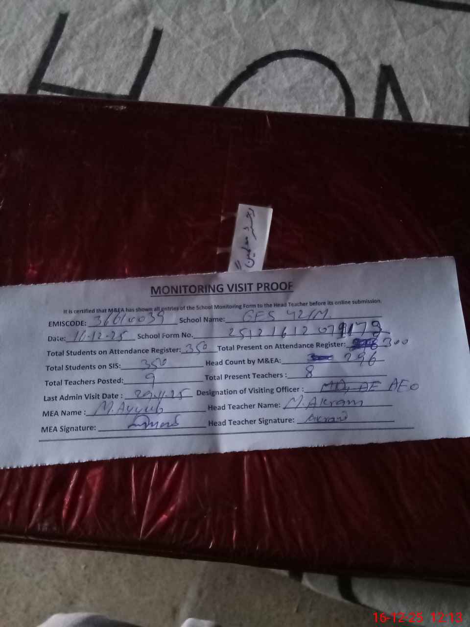 | EMIS Code: 36610039 | Name of School: GES CHAK NO.42 M | |||
