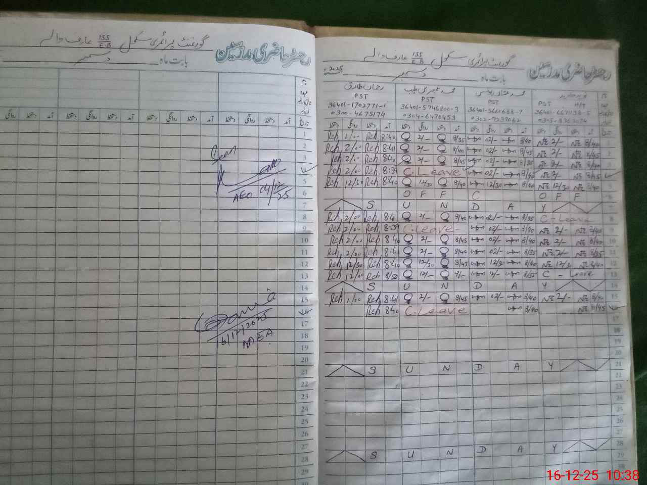 | CNIC | Full Name | Designation | R/C | Absence During Last Calender Month |