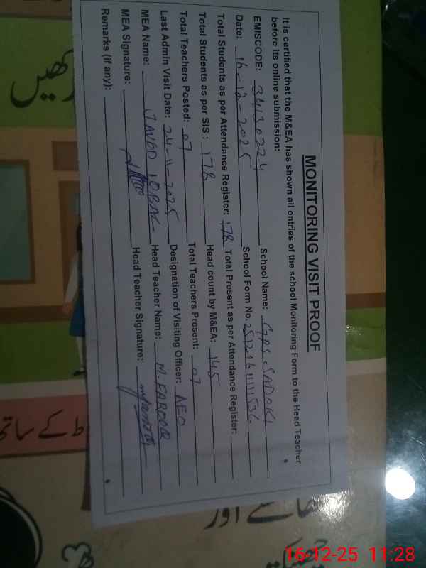 | EMIS Code: 34130224 | Name of School: GPS SADOKE | |||