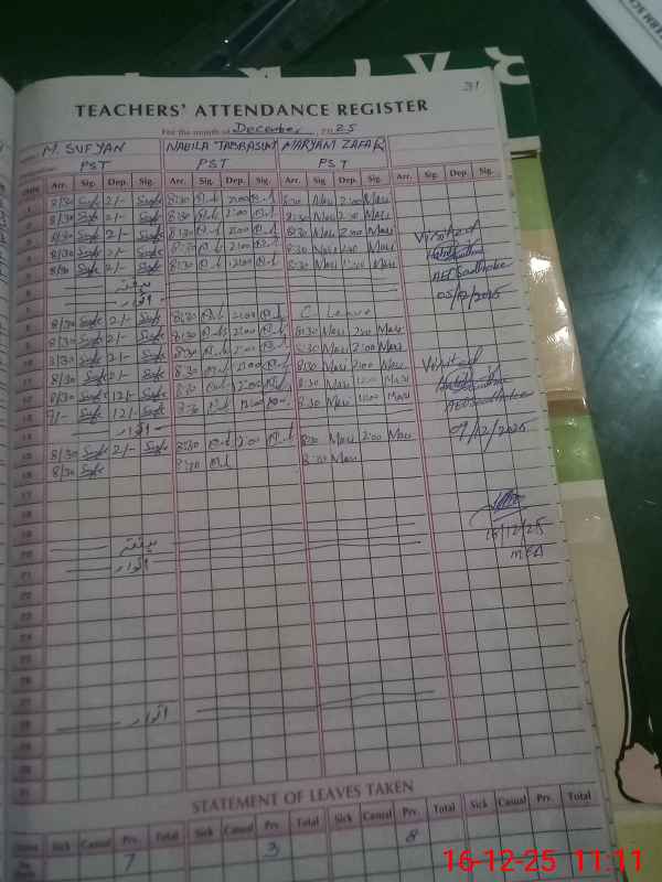 | Attendance Register | Head Teacher | MEA with School | Visit Proof |