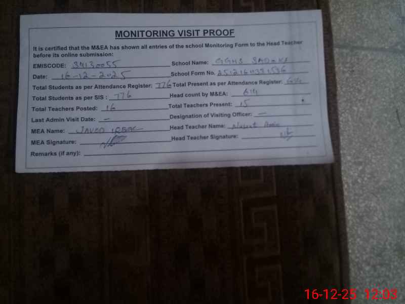 | EMIS Code: 34130055 | Name of School: GGHS SADOKE | |||