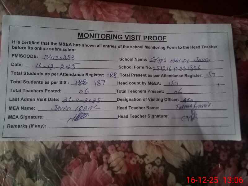 | EMIS Code: 34130253 | Name of School: GGPS MAI DE JHUGI | |||