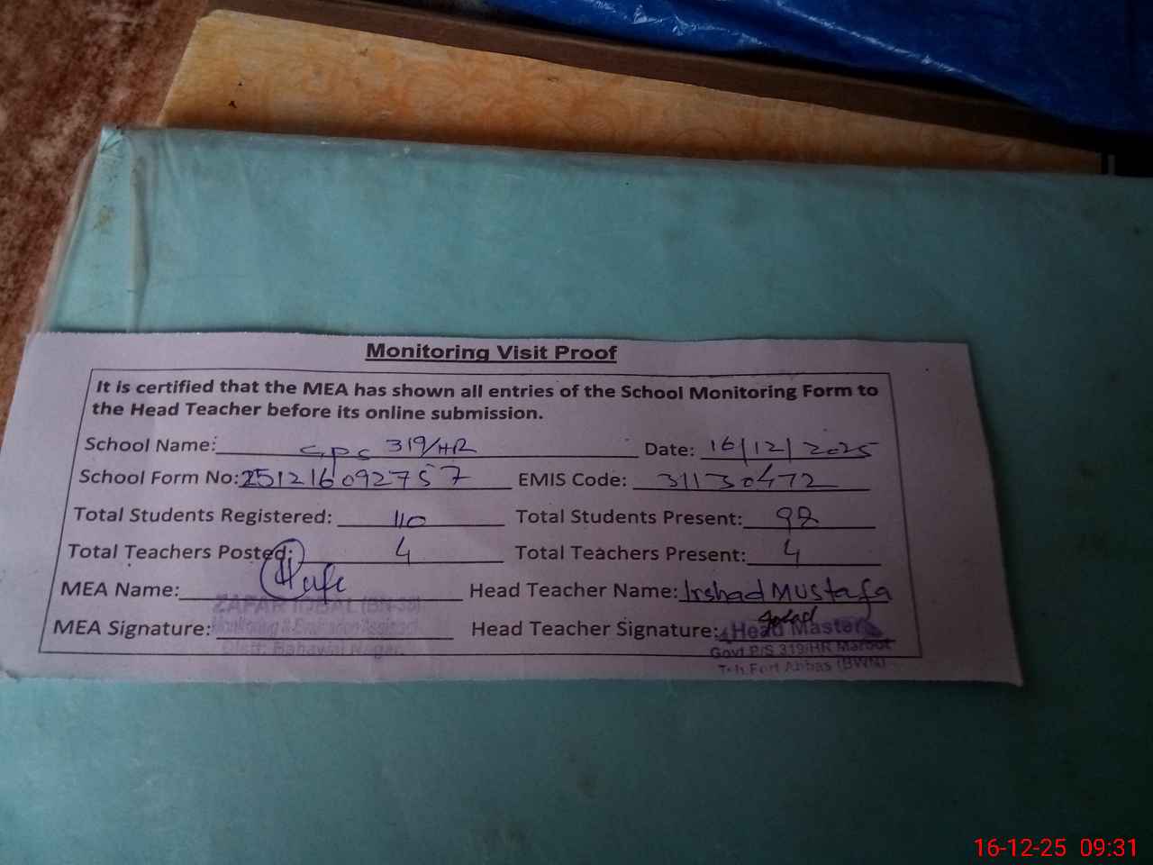 | EMIS Code: 31130472 | Name of School: GPS CHAK NO 319/HR | |||