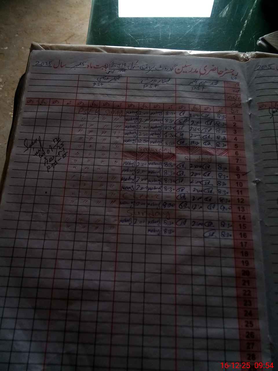 | CNIC | Full Name | Designation | R/C | Absence During Last Calender Month |