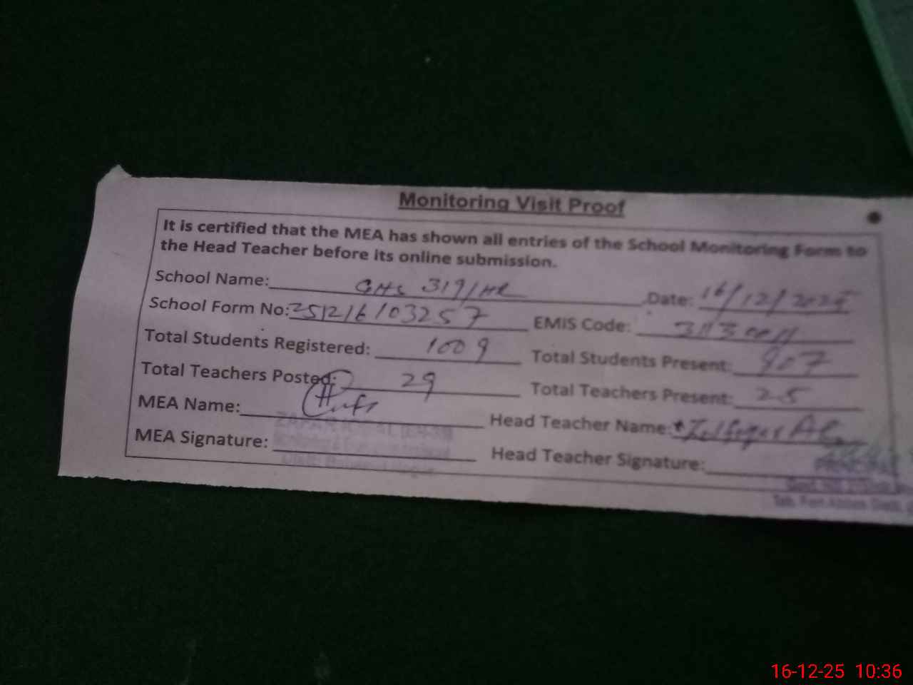 | EMIS Code: 31130011 | Name of School: GHSS CHAK 319/HR | |||