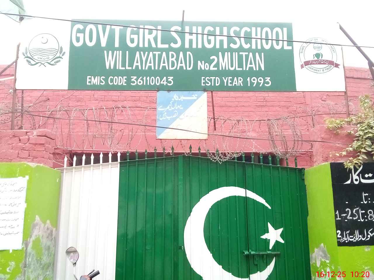 | EMIS Code: 36110043 | Name of School: GGHS WILLAYAT ABAD NO.2 MULTAN | |||