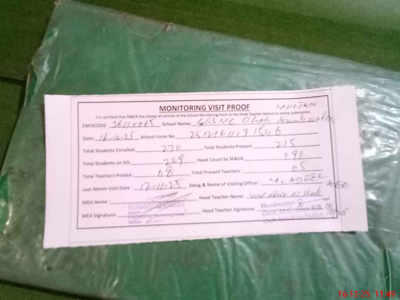 | EMIS Code: 36110065 | Name of School: GES MC CHAH AMBB WALA MULTAN | |||