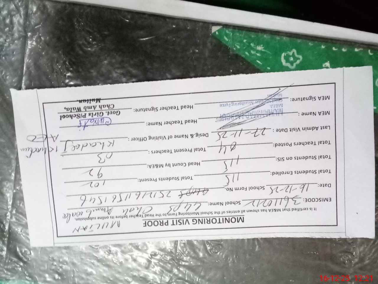 | EMIS Code: 36110212 | Name of School: GGPS CHAH AMB WALA | |||