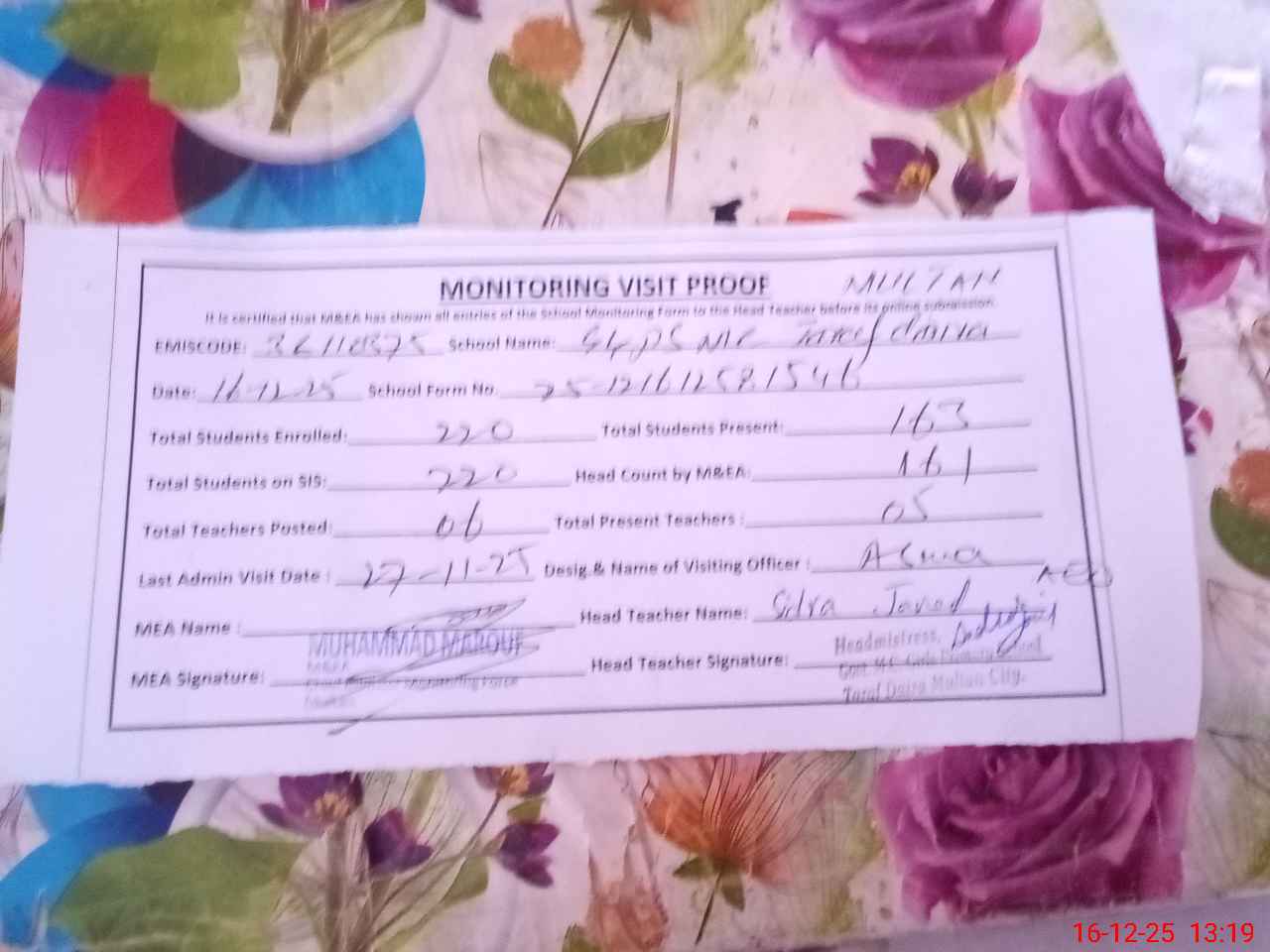 | Certified that this School was Inspected by the Undersigned MEA/DMO Today and the Information Stated Above is as Per Record. | |||||