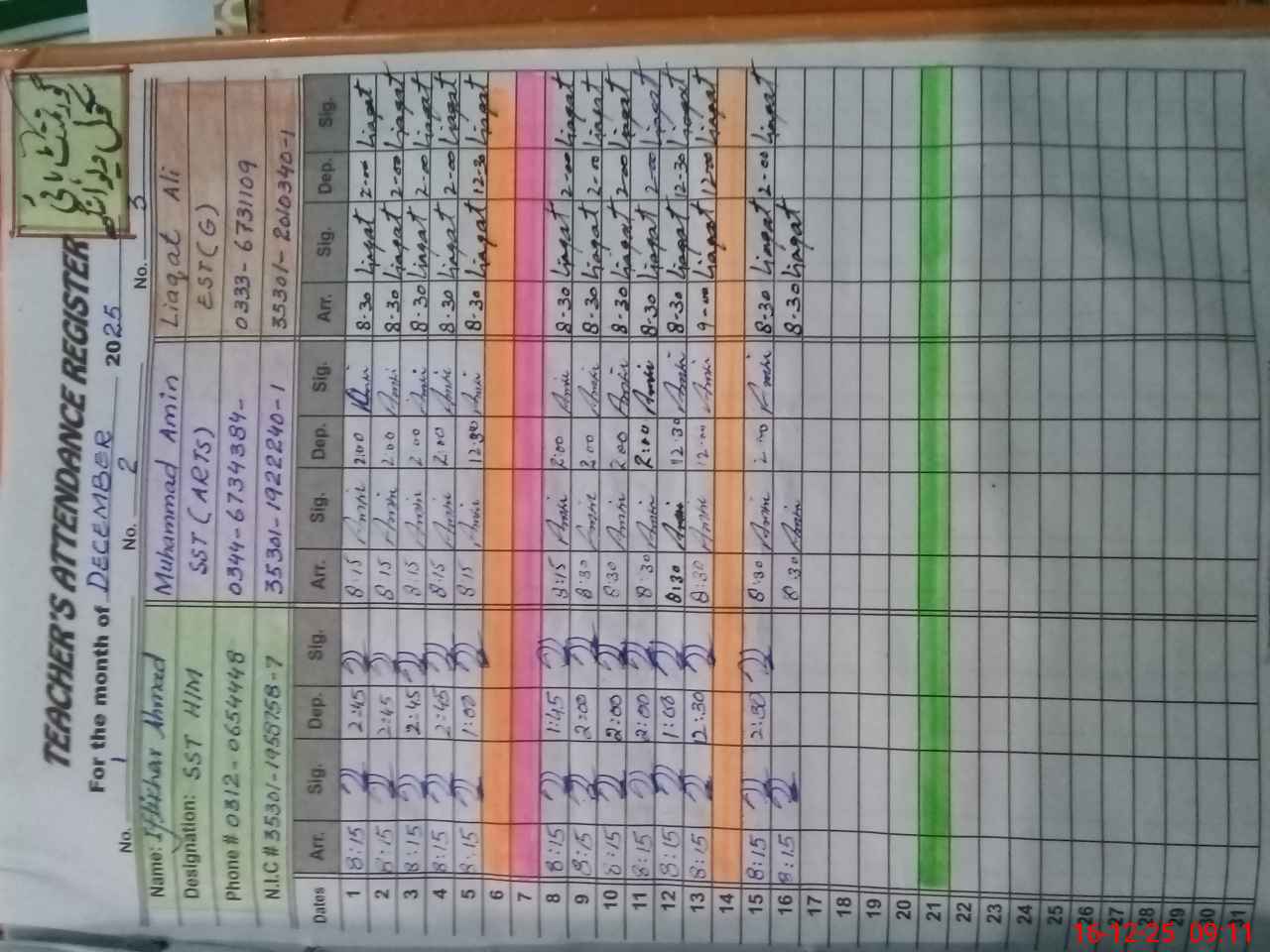 | Name: IF**** AH**** Designation: (School Headmaster's/Headmistress's) SST INCHARGE HM Phone/Cell Number: 03**** |