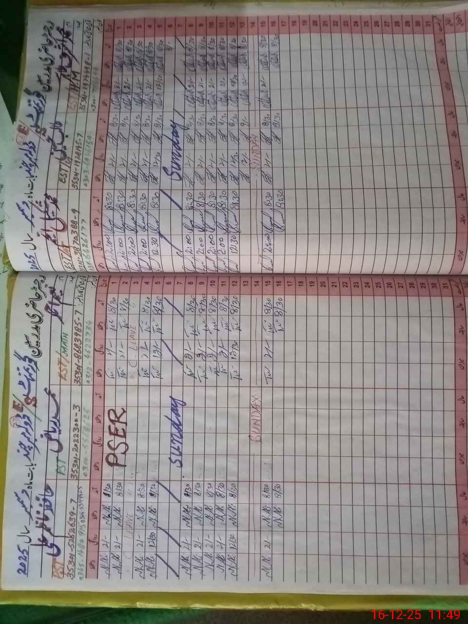 | CNIC | Full Name | Designation | R/C | Absence During Last Calender Month |
