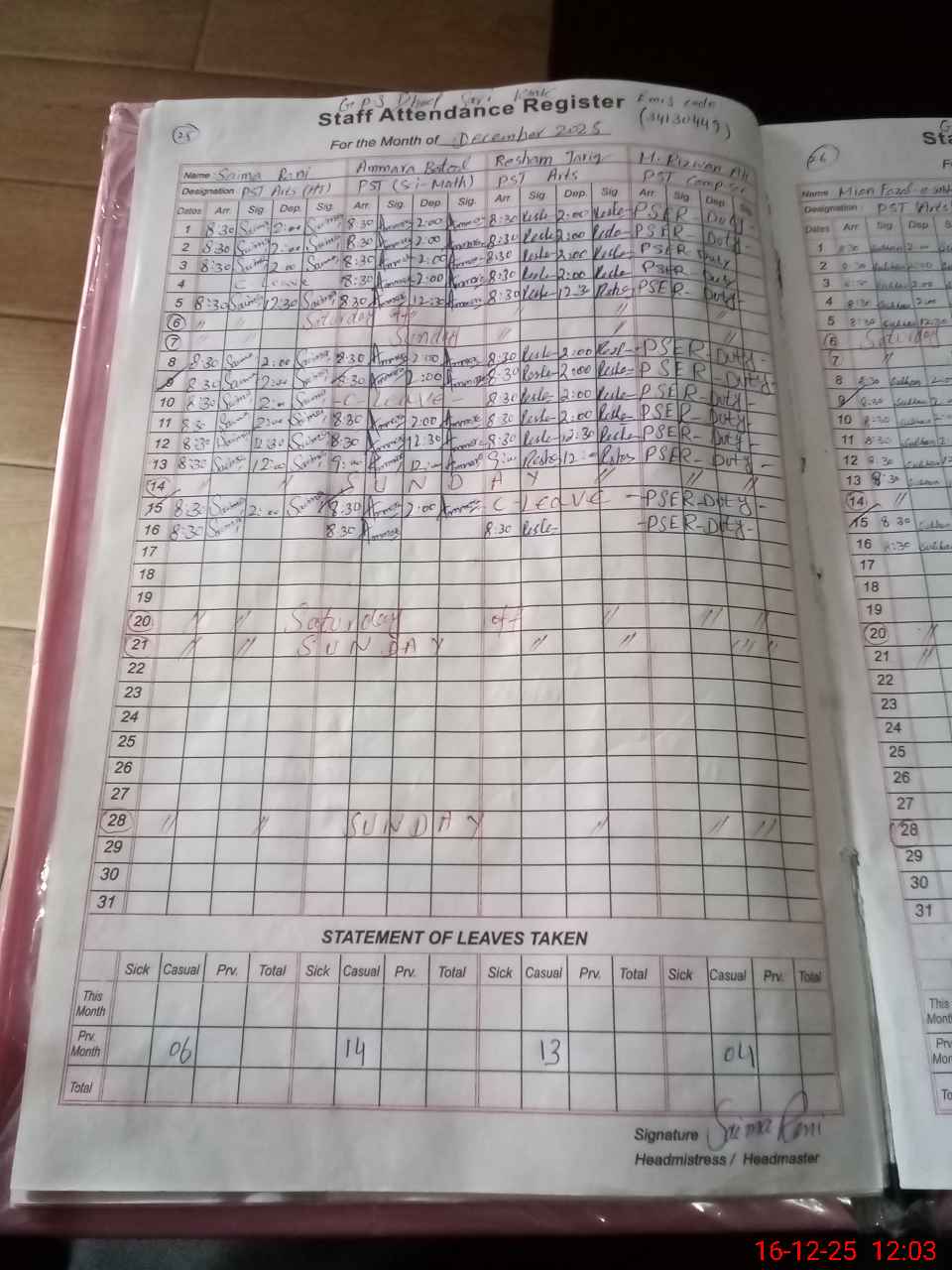 | Name: SA**** RA**** Designation: (School Headmaster's/Headmistress's) PST/PTC/JV Phone/Cell Number: 03**** |
