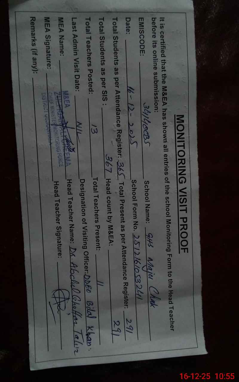 | EMIS Code: 34140035 | Name of School: GHS MAJU CHAK | |||