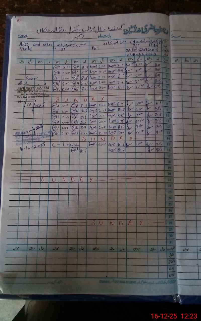 | Attendance Register | Head Teacher | MEA with School | Visit Proof |