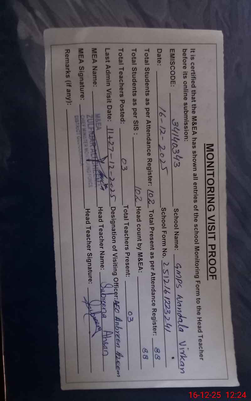 | EMIS Code: 34140343 | Name of School: GMPS WANDALA VIRKAN | |||