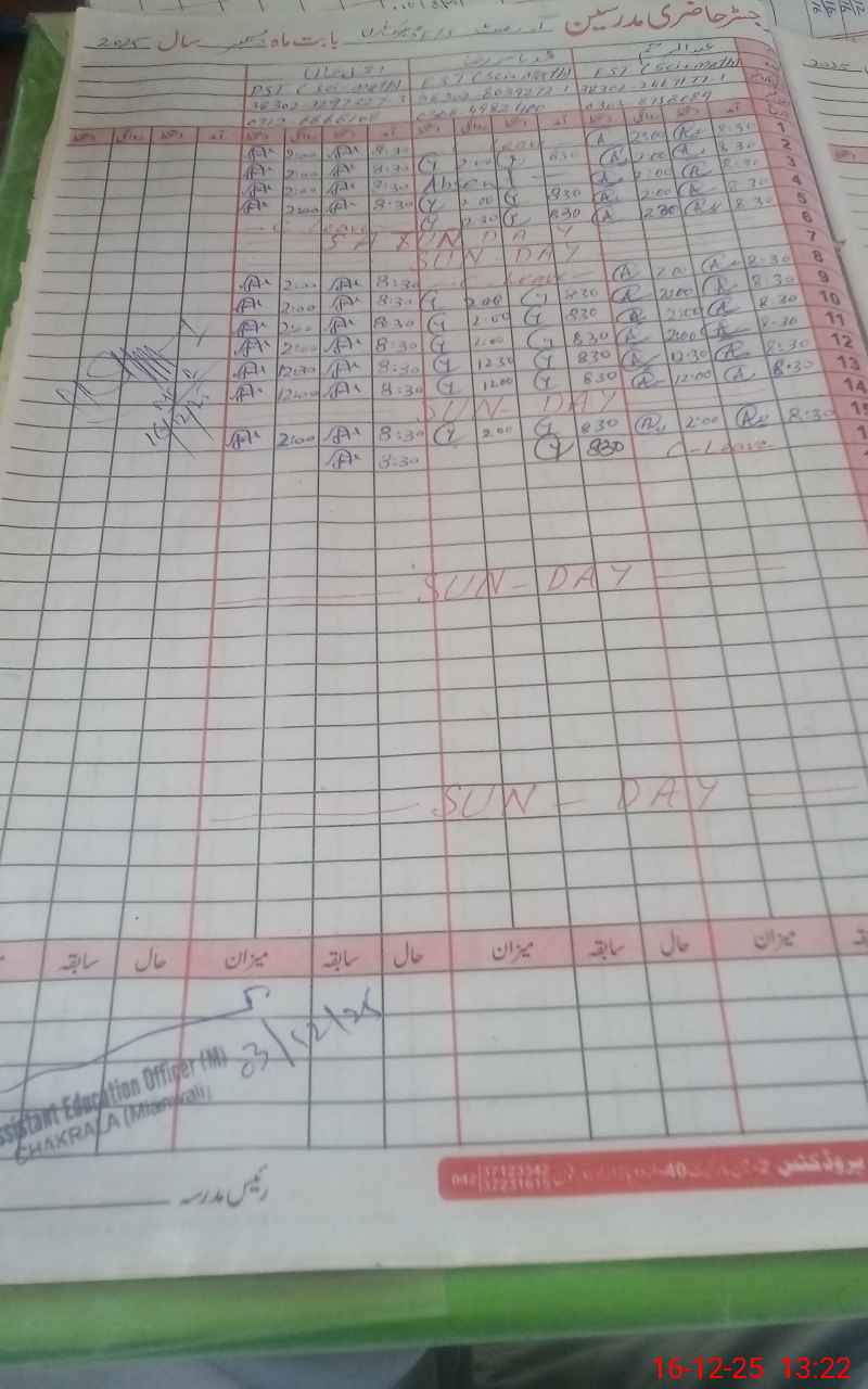 | Name: Ab**** Ra**** Designation: (School Headmaster's/Headmistress's) PST Phone/Cell Number: 03**** |