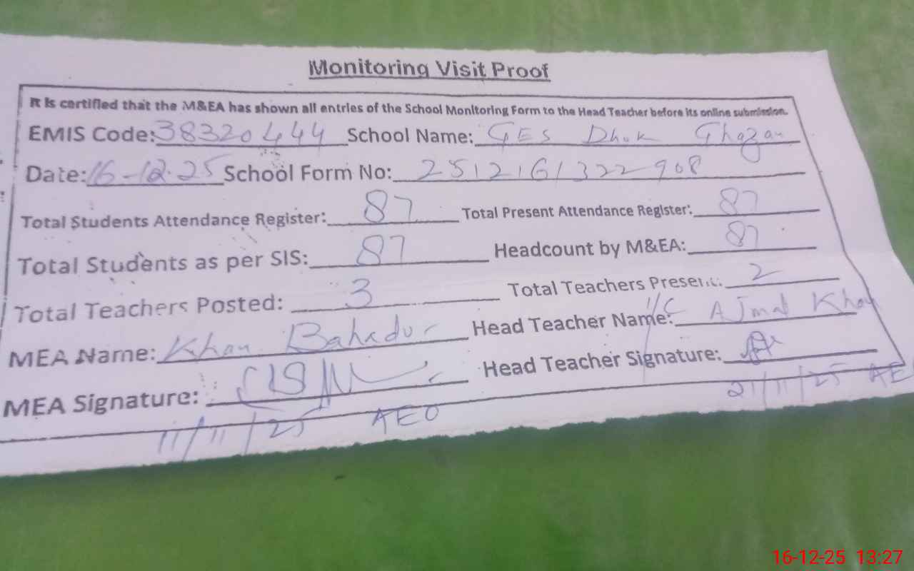 | EMIS Code: 38320444 | Name of School: GES DHOK GHAZAN | |||
