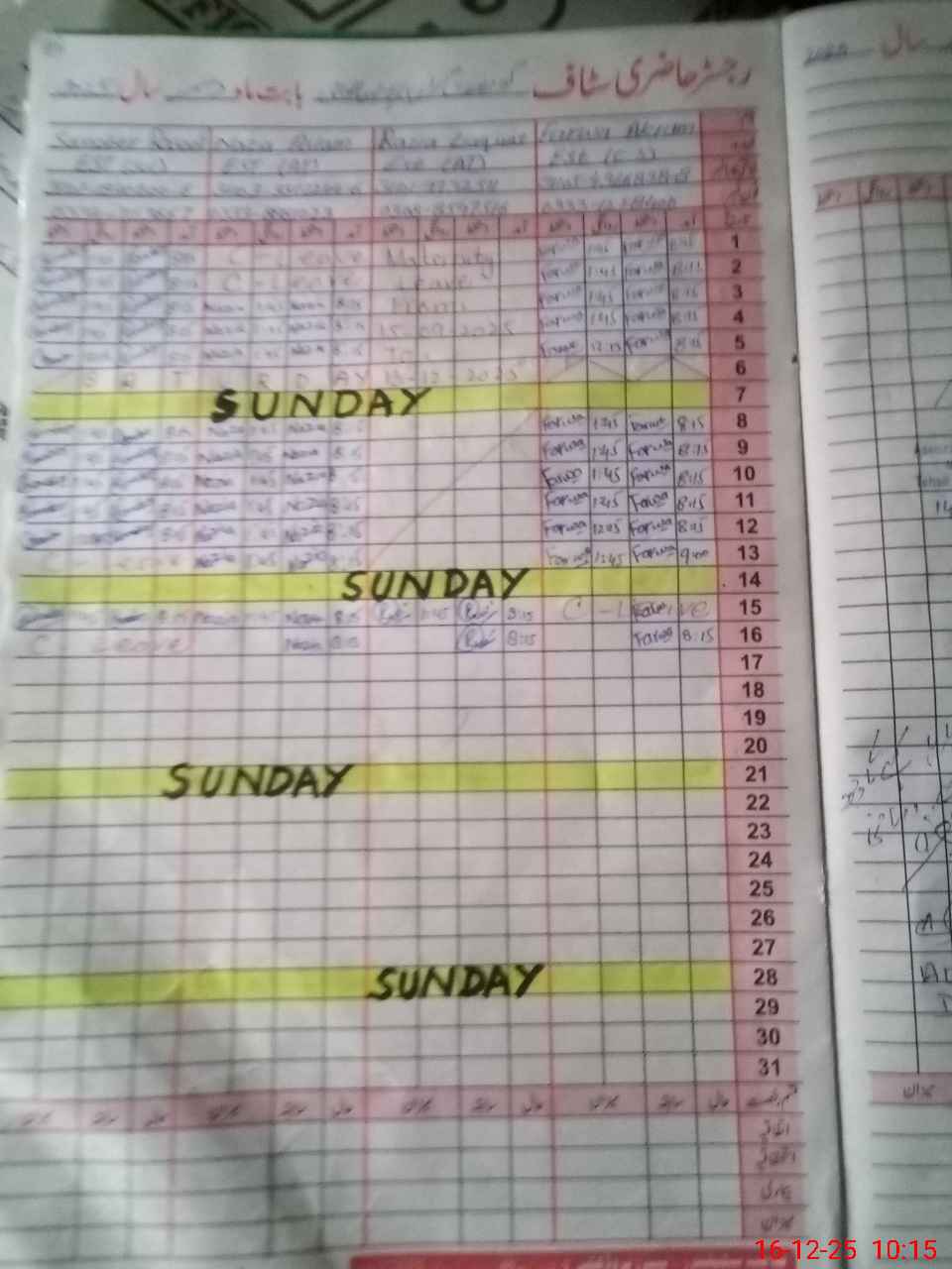 | CNIC | Full Name | Designation | R/C | Absence During Last Calender Month |