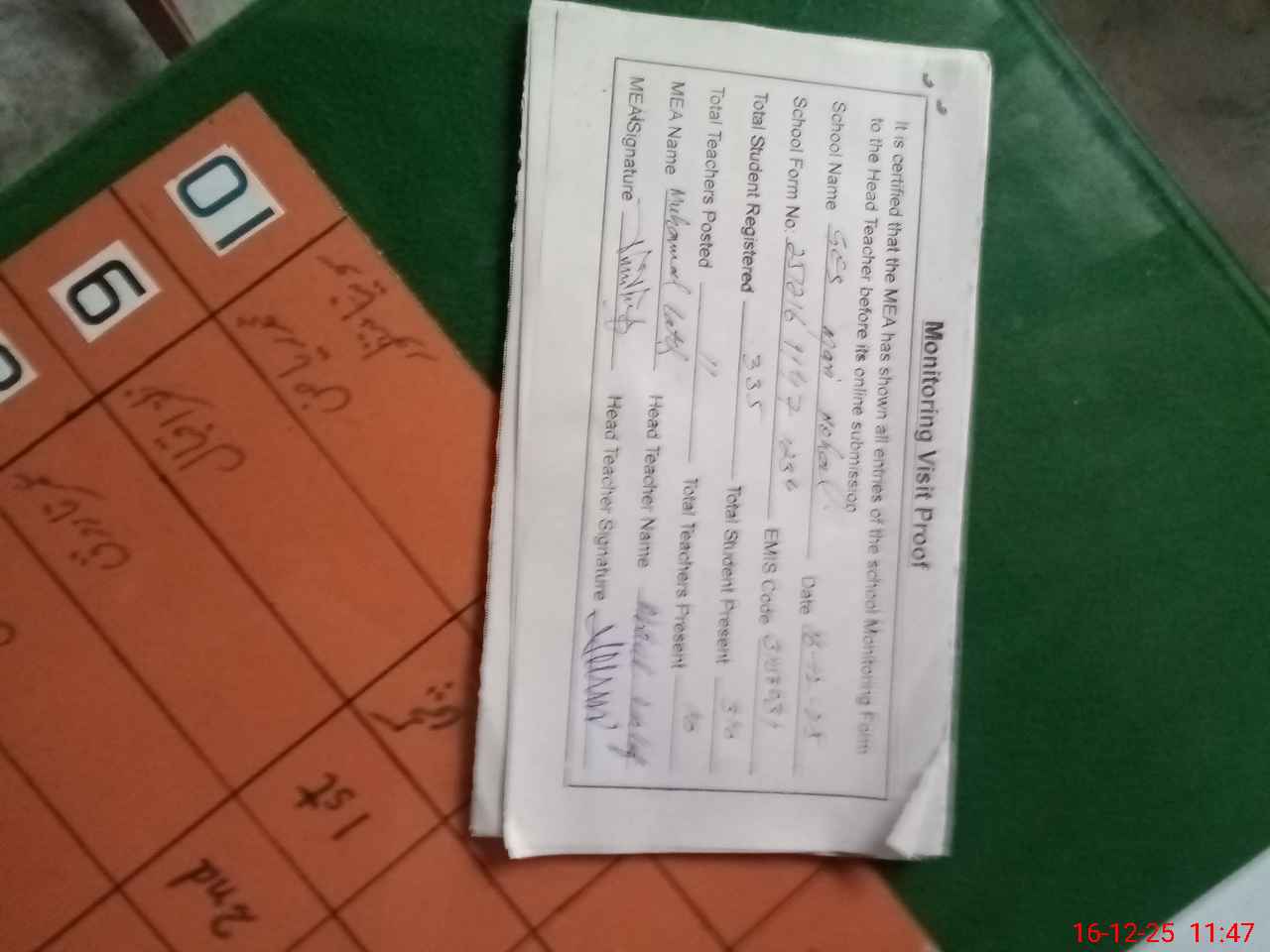 | Certified that this School was Inspected by the Undersigned MEA/DMO Today and the Information Stated Above is as Per Record. | |||||