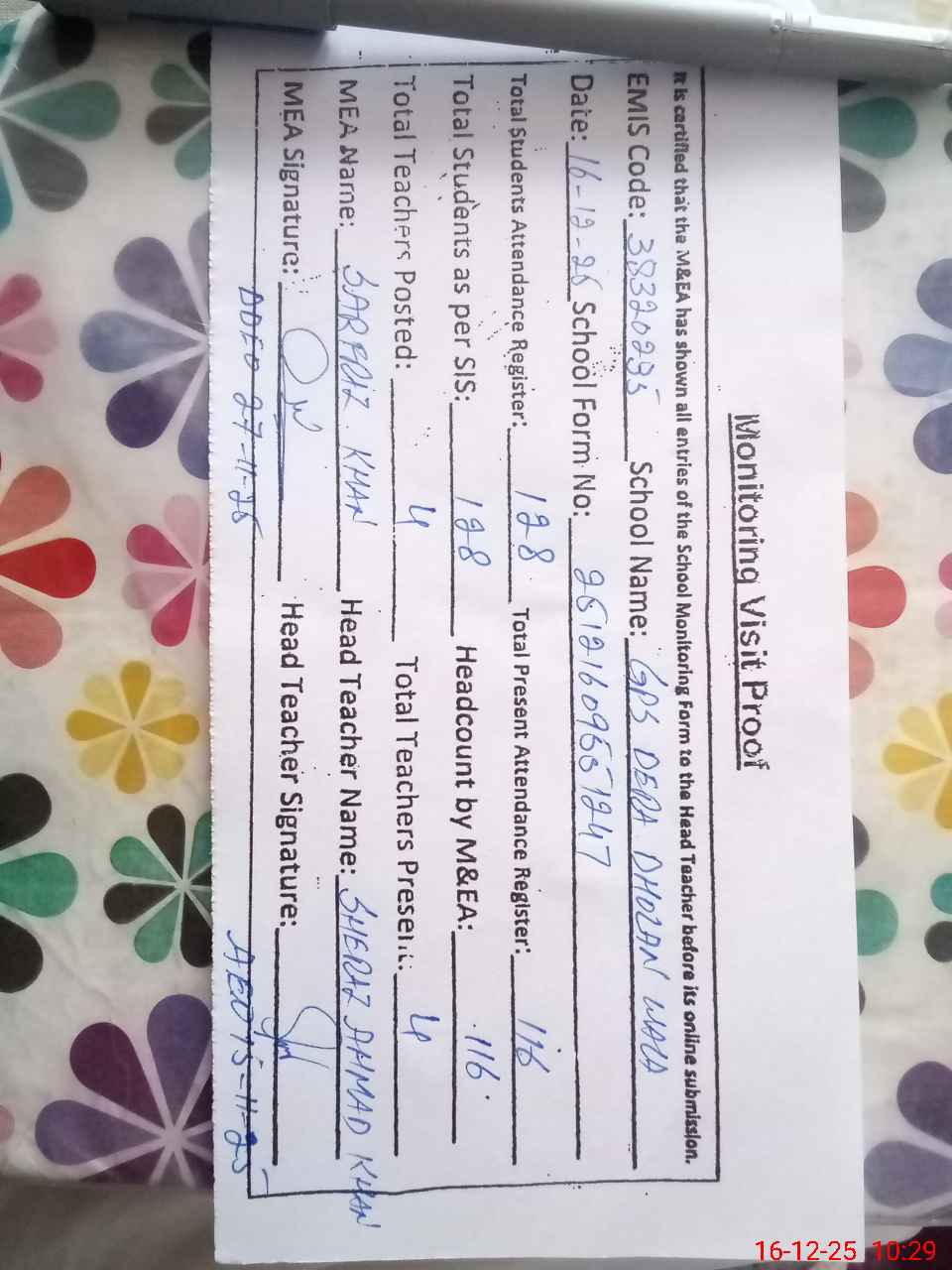 | EMIS Code: 38320235 | Name of School: GPS DERA DHOLAN WALA WAN BHACHRAN | |||