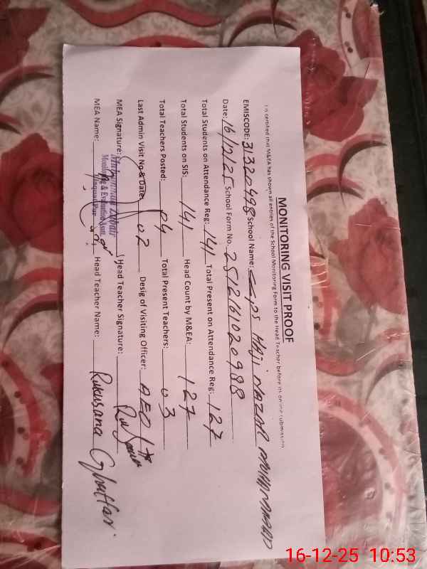 | EMIS Code: 31320498 | Name of School: GGPS HAJI NAZAR | |||
