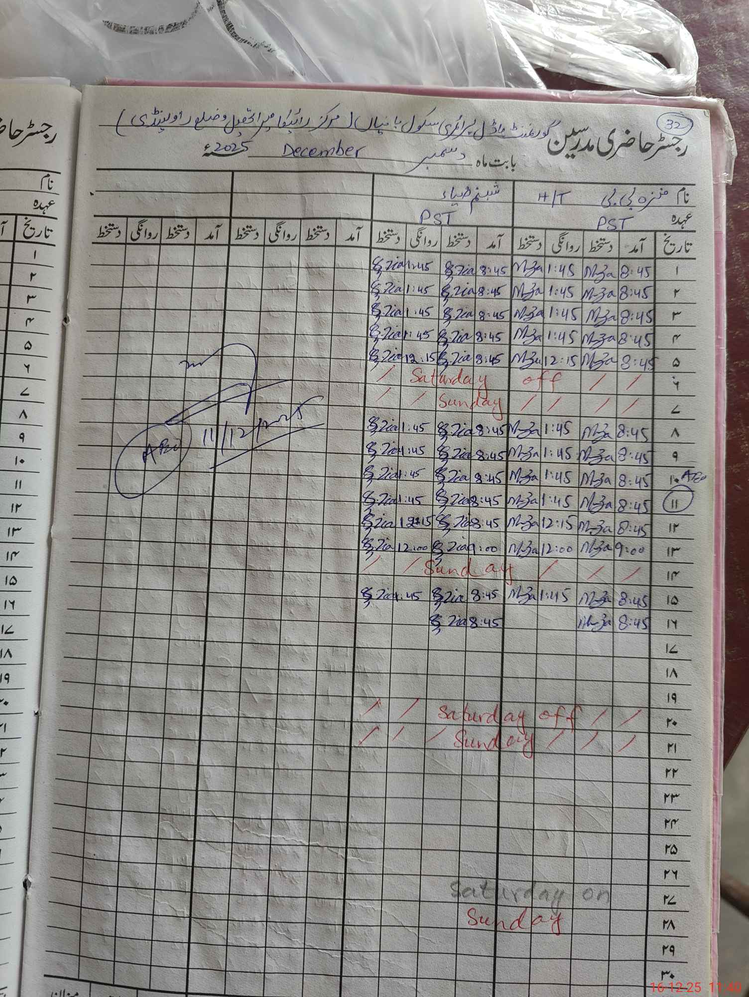 | CNIC | Full Name | Designation | R/C | Absence During Last Calender Month |
