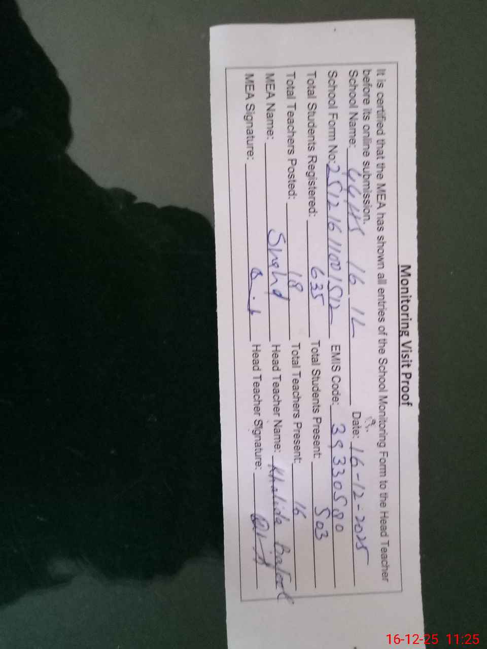| Certified that this School was Inspected by the Undersigned MEA/DMO Today and the Information Stated Above is as Per Record. | |||||