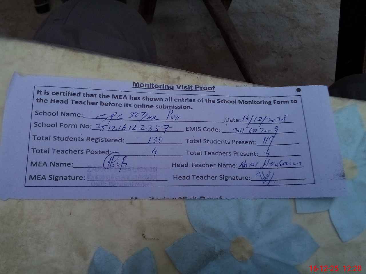 | EMIS Code: 31130209 | Name of School: GPS CHAK NO.327/HRL | |||