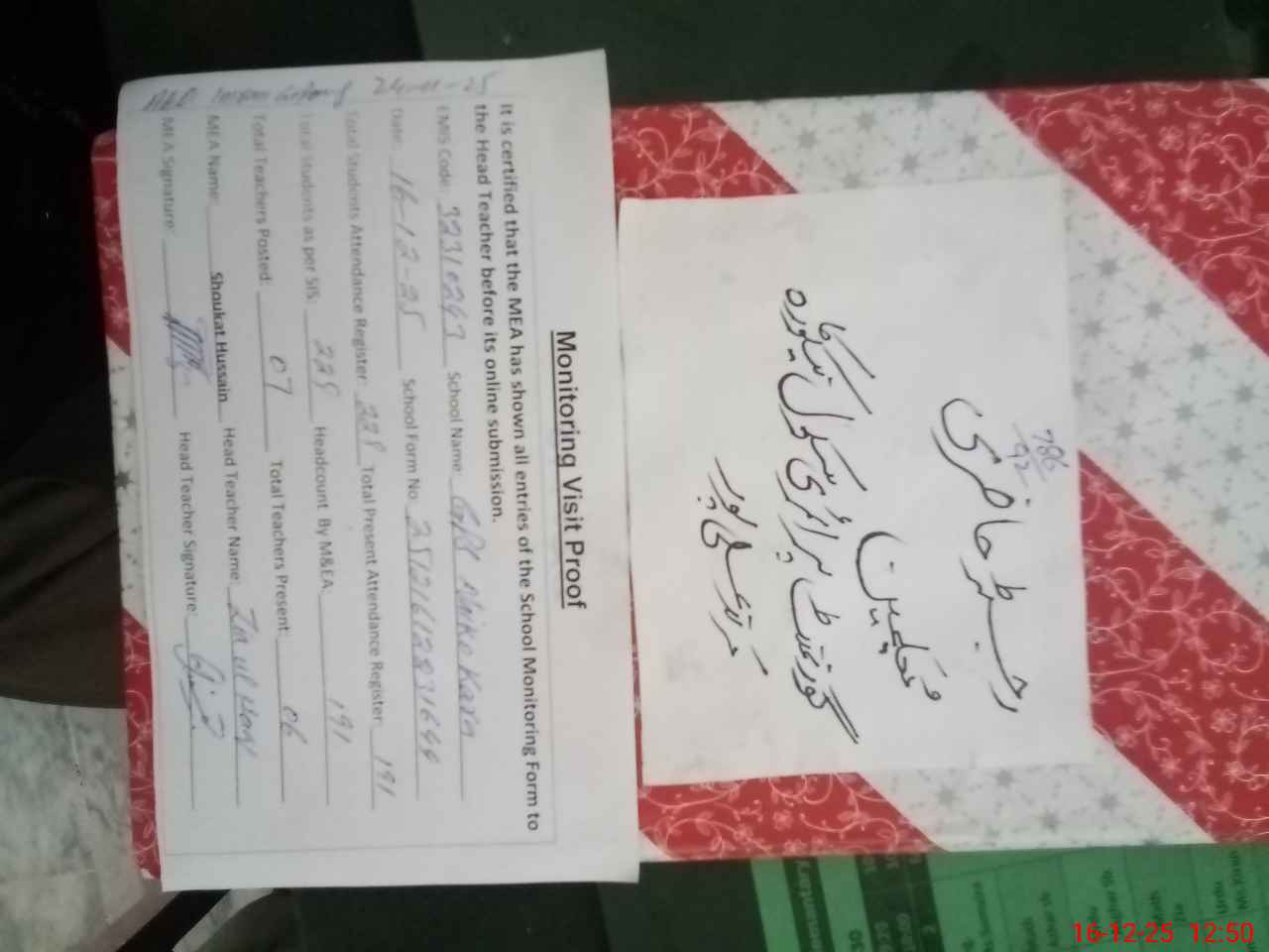 | Certified that this School was Inspected by the Undersigned MEA/DMO Today and the Information Stated Above is as Per Record. | |||||